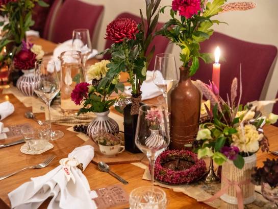 Romantic, lovingly decorated and exclusively for you and your guests. In our separate country house room, you can be in private with a small group and still enjoy the attentive service of the restaurant. Just the thing for a small, intimate celebration.