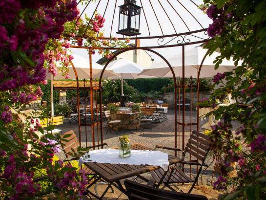 It doesn't get more romantic than this. Nestled between sandstone elements and English scented roses, you can enjoy the hours of sunshine in Saxon Switzerland in a relaxed atmosphere. Whether it's a coffee in the open air or a champagne reception with our homemade rose punch. Our rose garden invites you to linger and indulge.